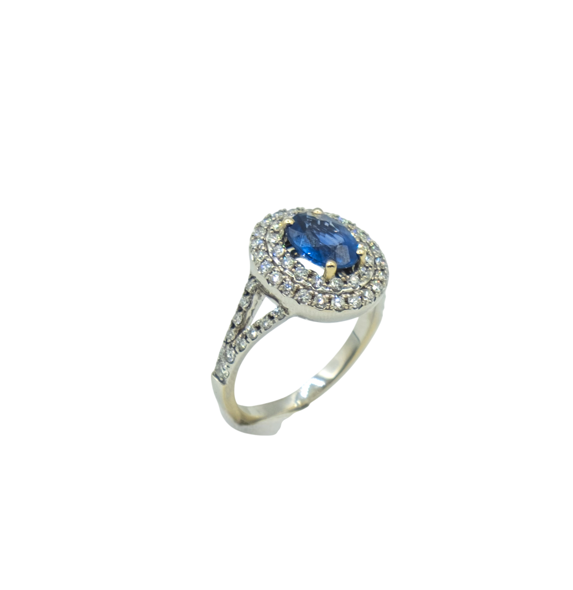 BAGUE ENTOURAGE AVEC SAPHIR CENTRAL ET DIAMANTS