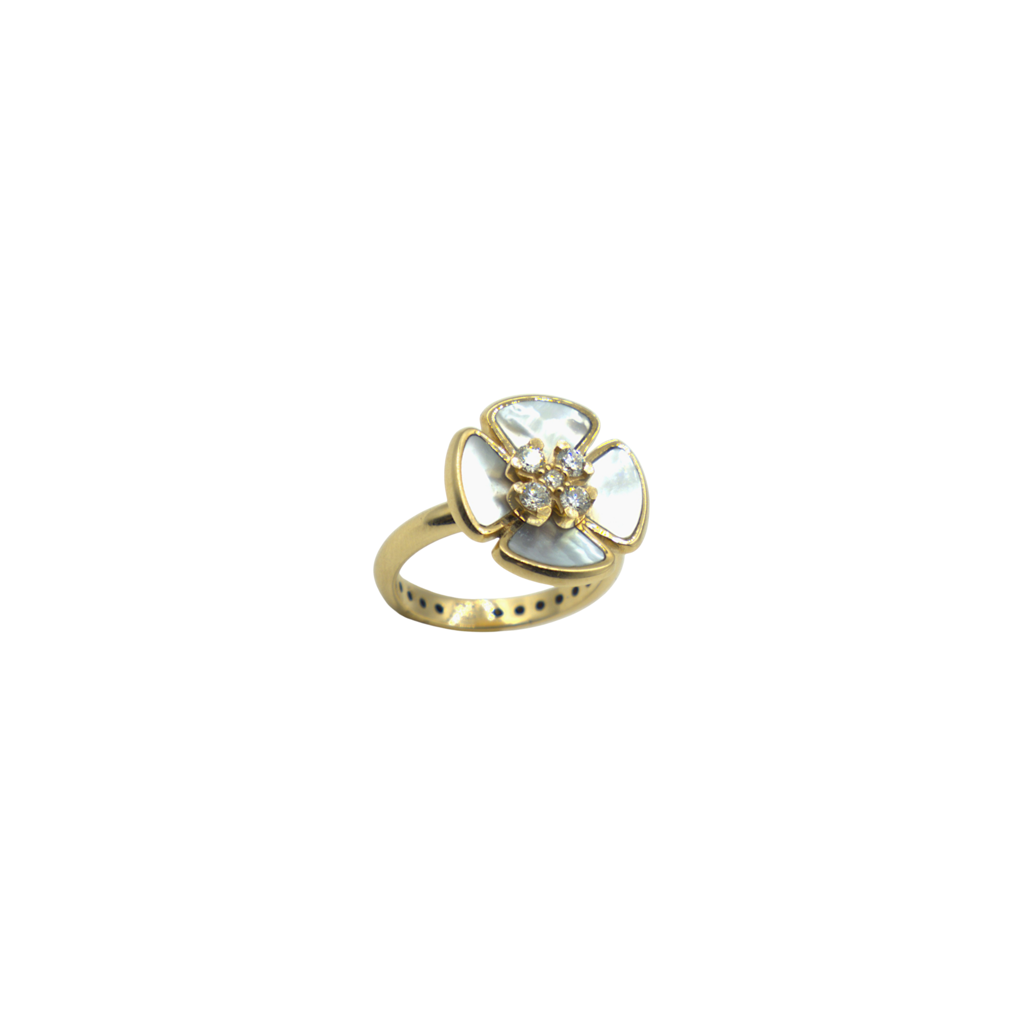 BAGUE FLEUR OR ROSE NACRE DIAMANTS