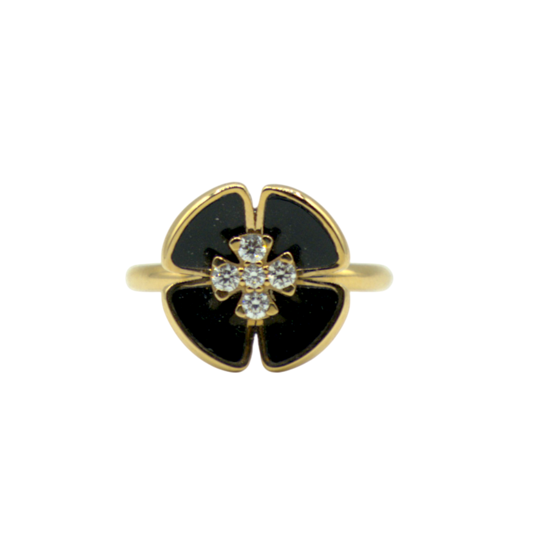 BAGUE FLEUR OR ROSE ONYX DIAMANTS