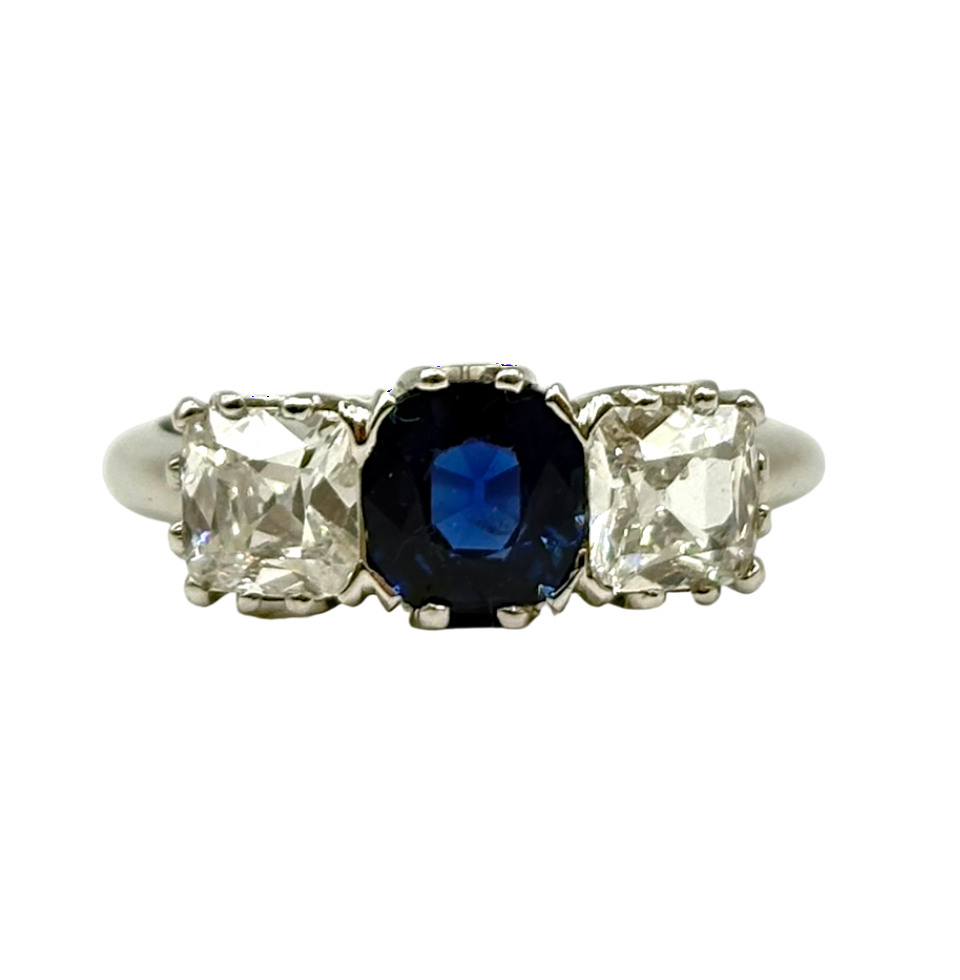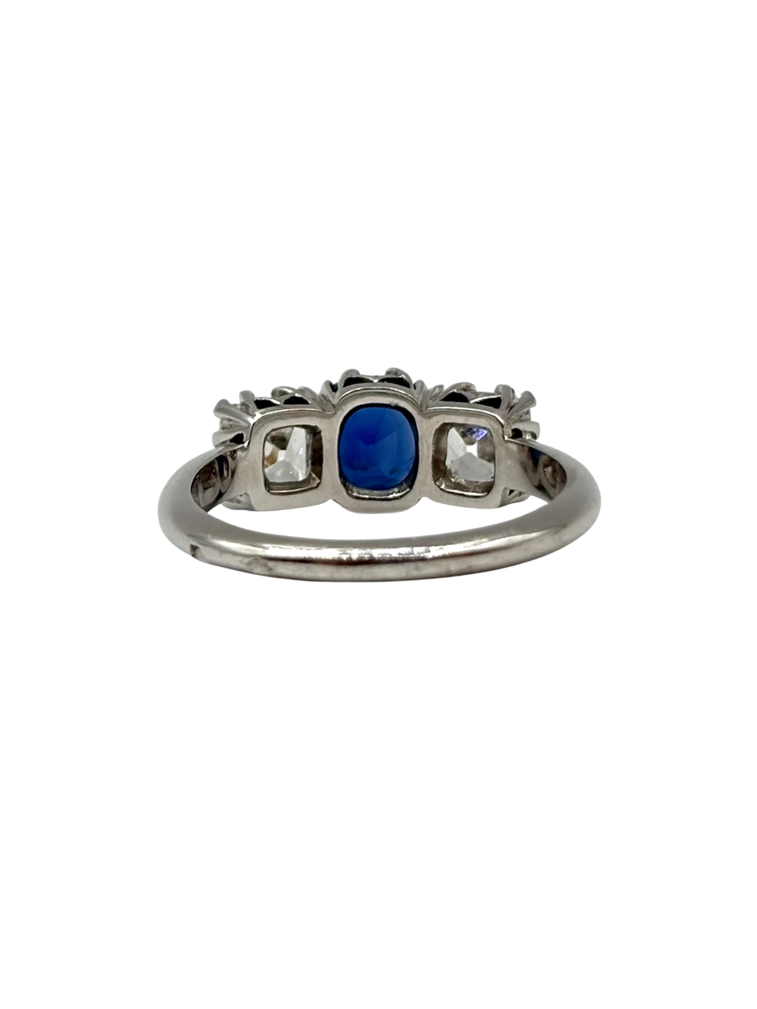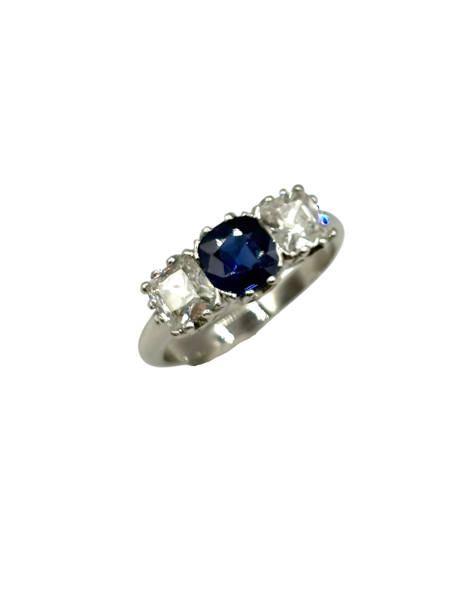 BAGUE OR BLANC AVEC SAPHIR ACCOMPAGNÉ DE DEUX DIAMANTS