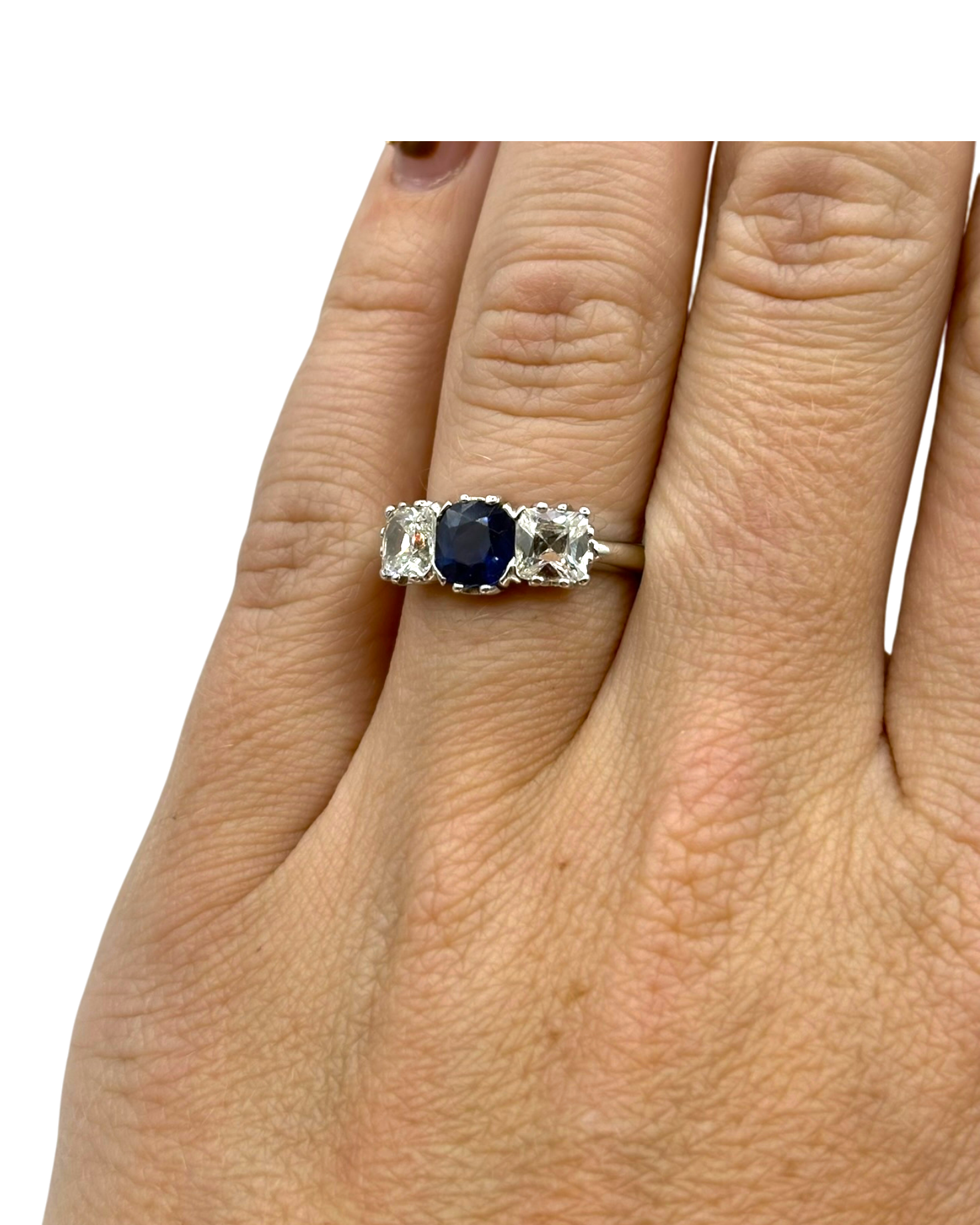 Sertie d’un saphir central pesant 3.33ct