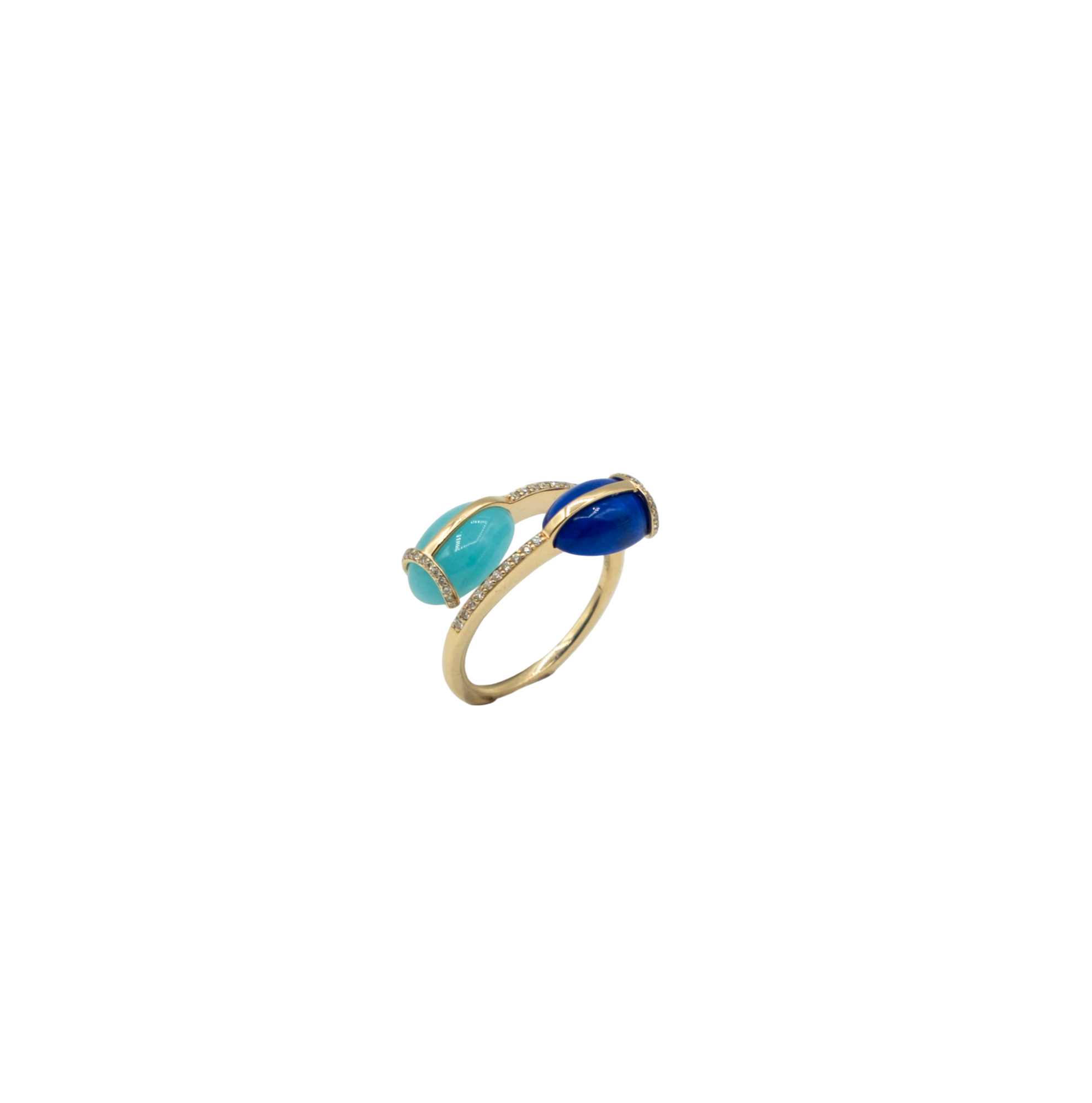 Sertie de deux pierres fines « scarabée » : une Amazonite et une Lapis Lazuli