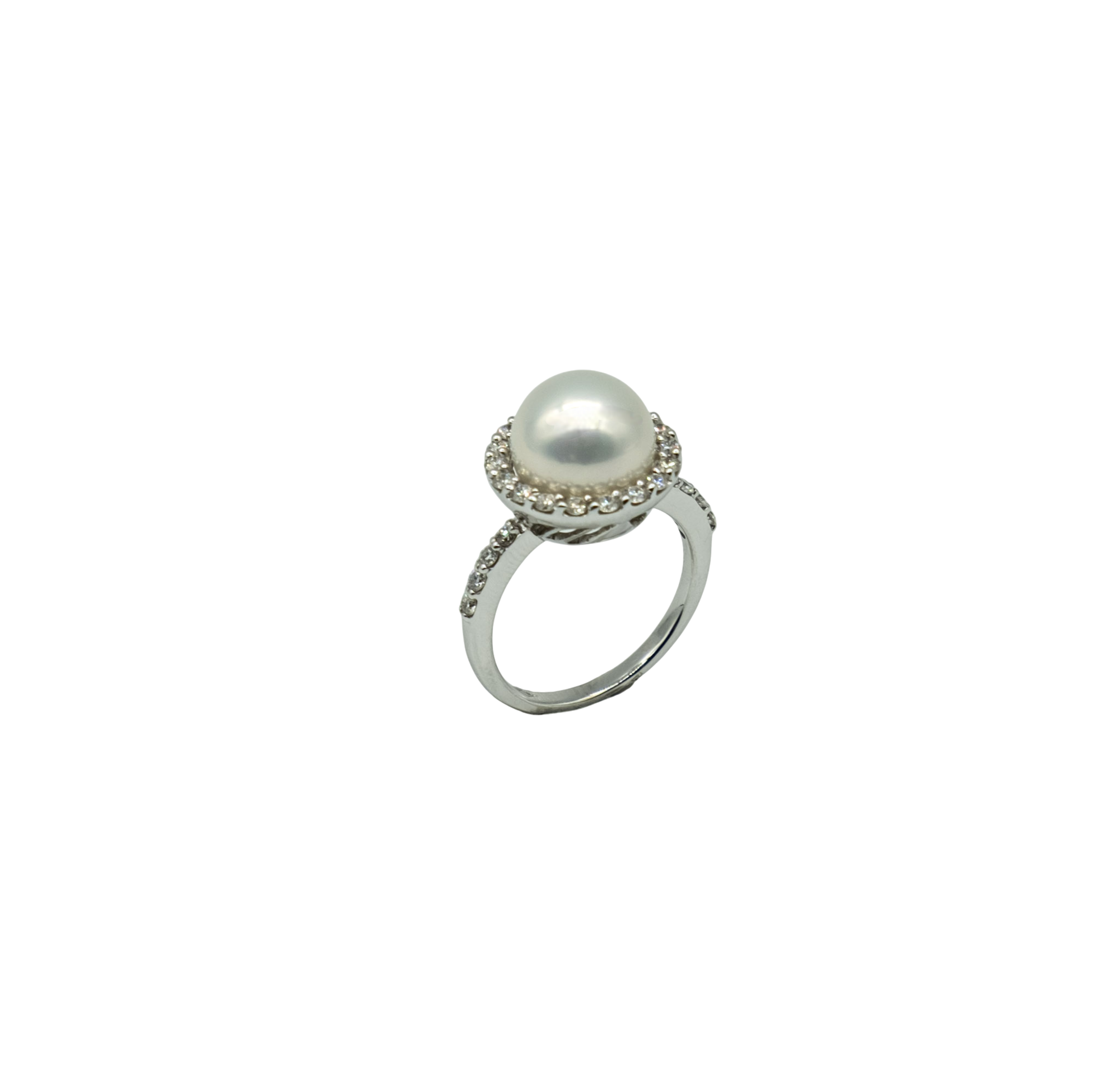 BAGUE PERLE EAU DOUCE 10.5mm ET DIAMANTS