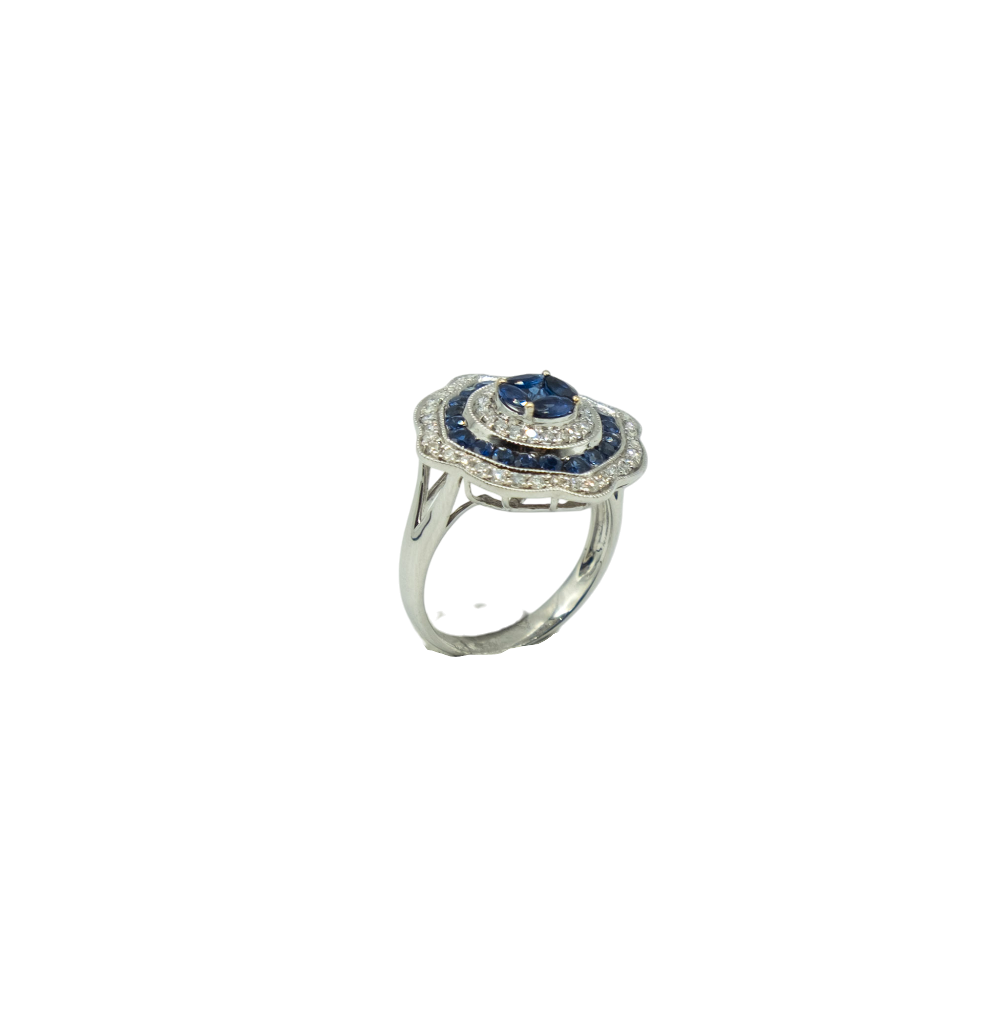 BAGUE DOUBLE ENTOURAGE SAPHIRS ET DIAMANTS